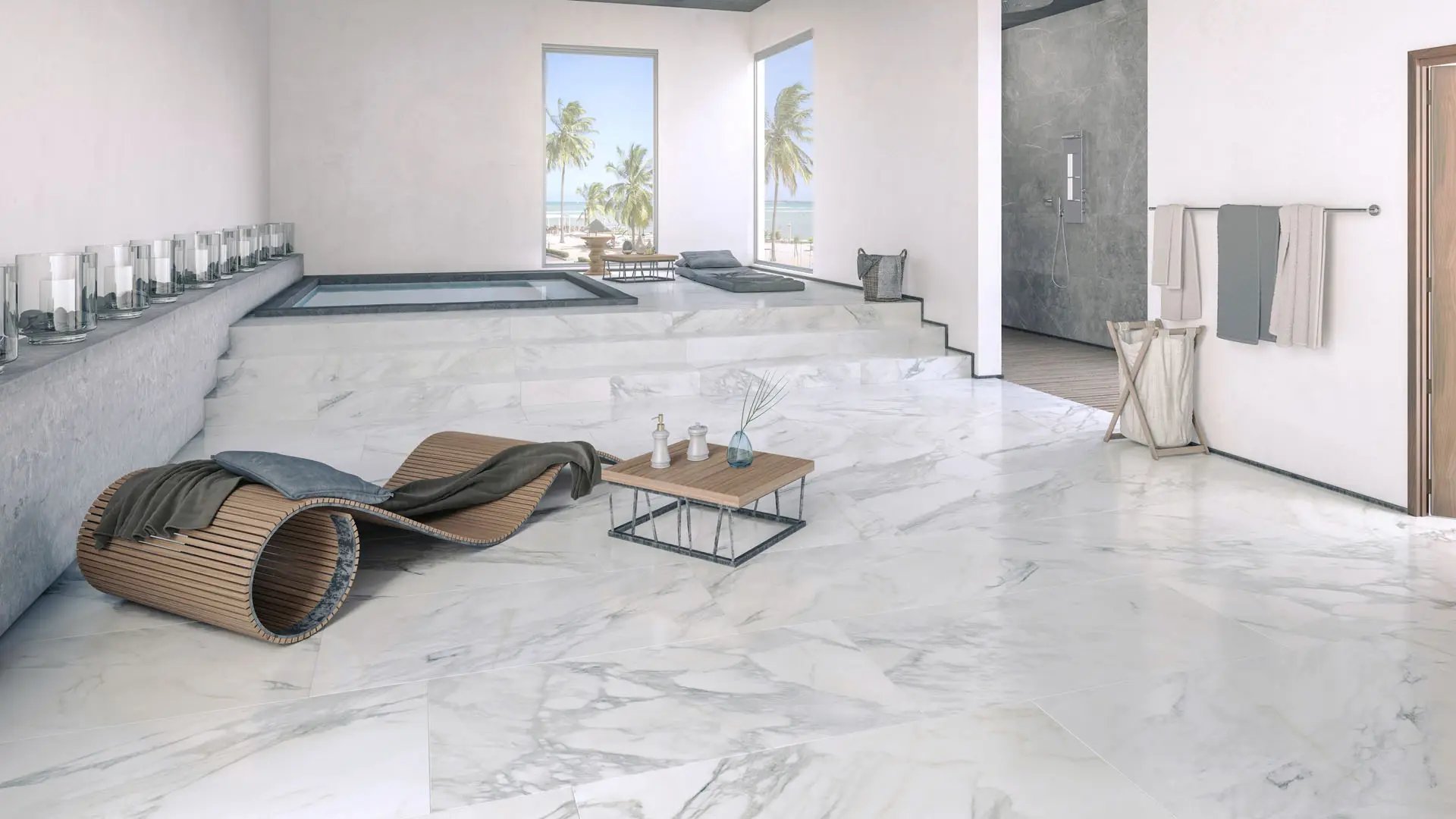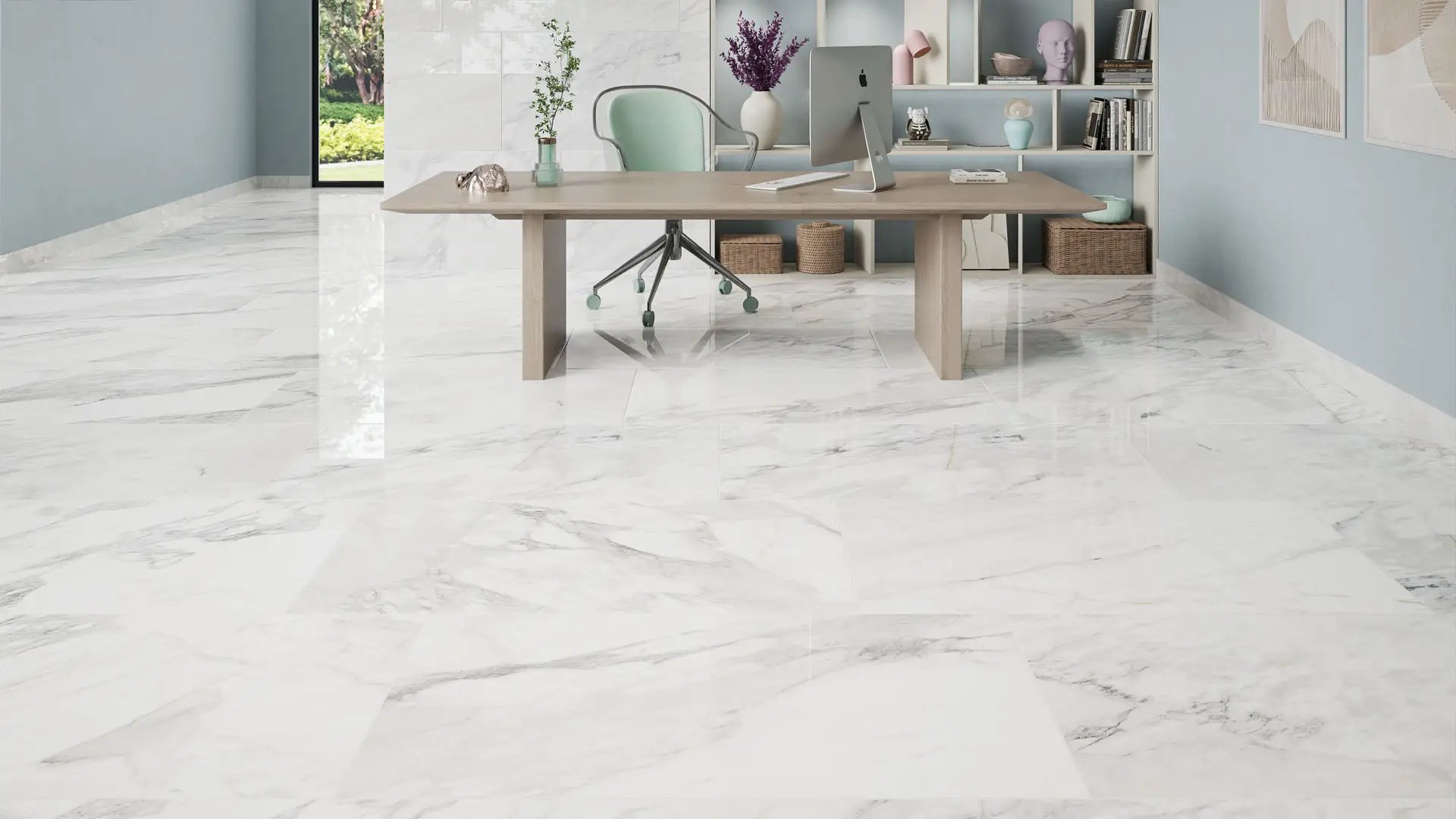 Dalgres Mármol Suave tipo Carrara se renueva con nuevos formatos — 60×60, 45×90 liso y Wave, y 90×90 rectificado — en acabado mate suave. Su diseño elegante y versátil realza cualquier espacio residencial o comercial, ideal para aplicaciones interiores.